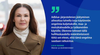 Ministeri Ranne: AdBlue-järjestelmien on kestettävä Suomen talvi