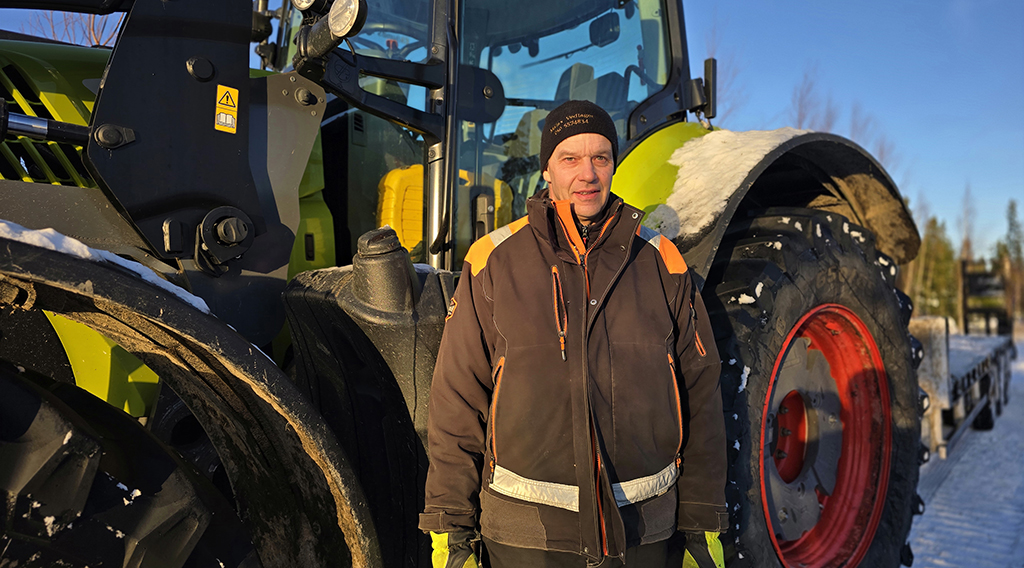 Närpiöläisellä Bengt Eklundilla on pitkä kokemus teiden ja kiinteistöjen piha-alueiden talvihoidosta. Claas Axion 850 on yksi Eklunds Lantbrukin traktoreista, joilla talvikunnossapitoa tehdään.