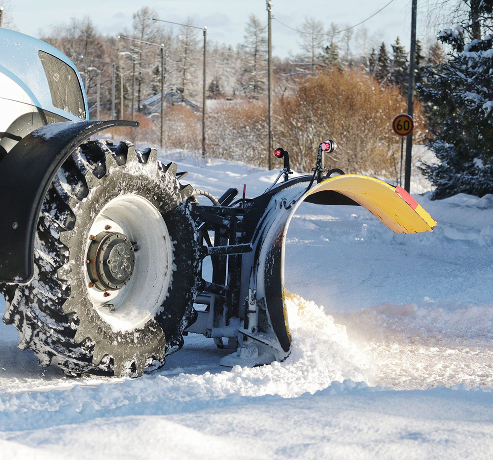 Traktorit sopivat hyvin pienemmillä väylillä ja pihoissa tehtävään lumen auraukseen.