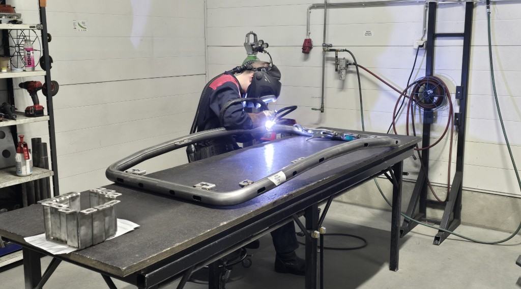 Taivutuksen jälkeen työ jatkuu hitsaamossa, jossa useammasta osasta valmistettavat tuotteet saavat lopullisen muotonsa ja kiinnityspisteet hitsataan paikoilleen.