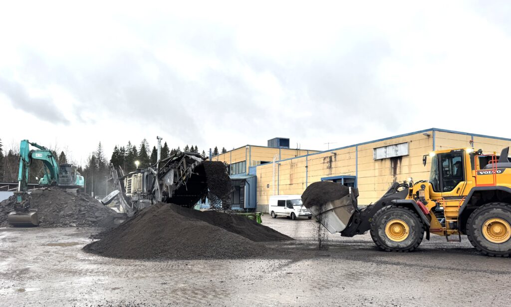 Vanhat teollisuushallit saavat väistyä uuden datakeskuksen tieltä Lahden Kiveriössä, ja Ahosen Kierrätysmurskauksella on tärkeä rooli purkumateriaalin muuttamisessa uusiokäyttöön.