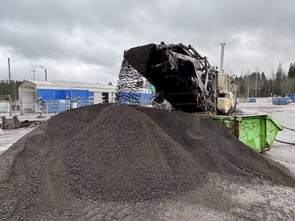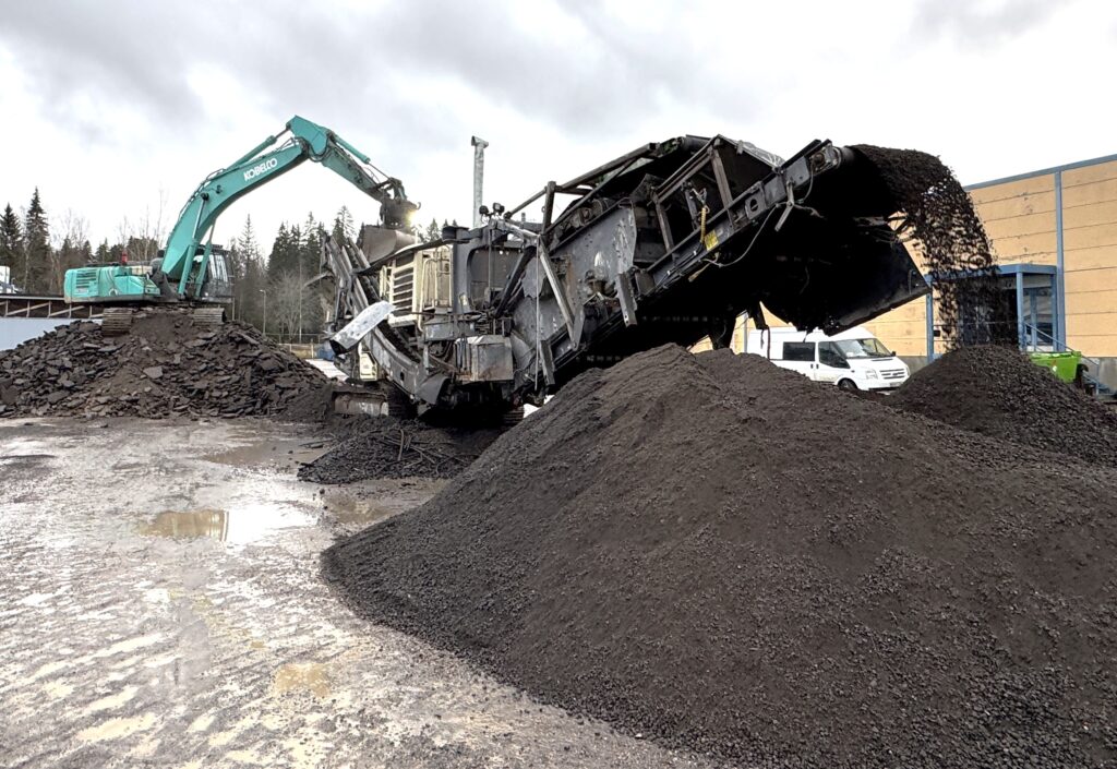 Ahosen Kierrätysmurskauksen toimitusjohtaja Jere Linnanmäki oli Lahdessa seuraamassa kierrätyksen sujumista, ja mies oli selvästi tyytyväinen prosessin etenemiseen.