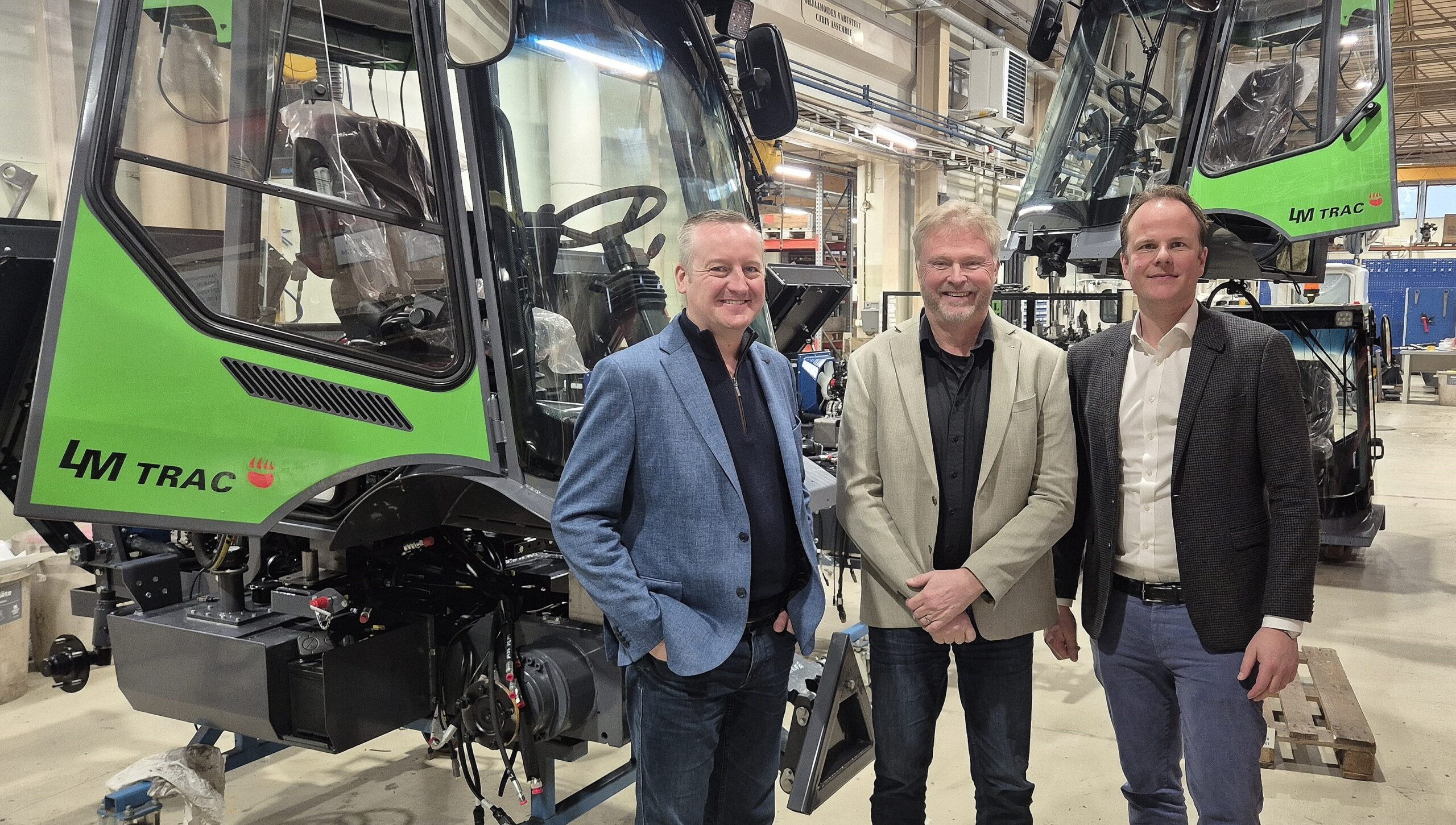 Maailmanlaajuisen konetalon SMT Netherlands B.V.:n toimitusjohtaja Jorik Kuiken (oik.) kävi tutustumassa LM Tracien valmistukseen Raumalla. Mukana matkassa oli myös LM Trac -koneiden jälleenmyynnistä Hollannissa vastaavan Pols B.V.:n toimitusjohtaja Rob Teunisse (vas.). Keskellä Lai-Mun toimitusjohtaja Ari Lindholm.