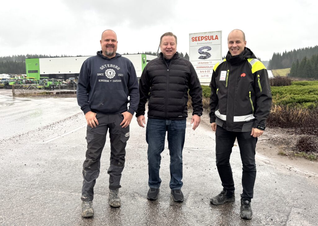 Seepsulassa Hitachi EX2000-7:n käyttökokemuksiin perehtymässä olivat myös kotimaisen perheyhtiö Rotatorin operatiivinen johtaja Pasi Virta sekä maarakennuskonemyyjä Tuomas Ventomaa.