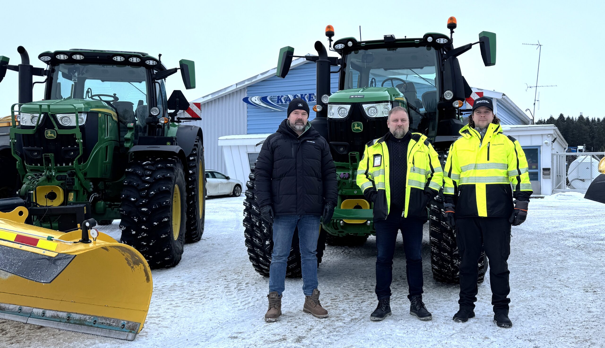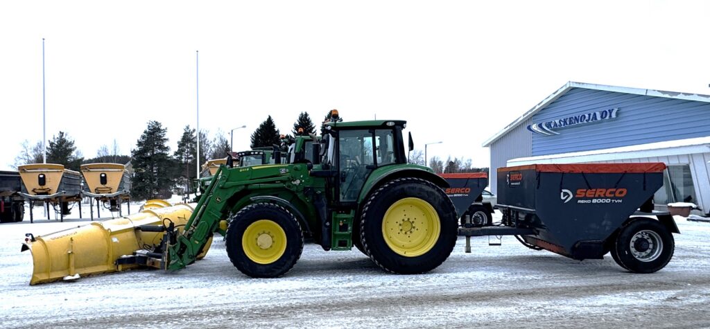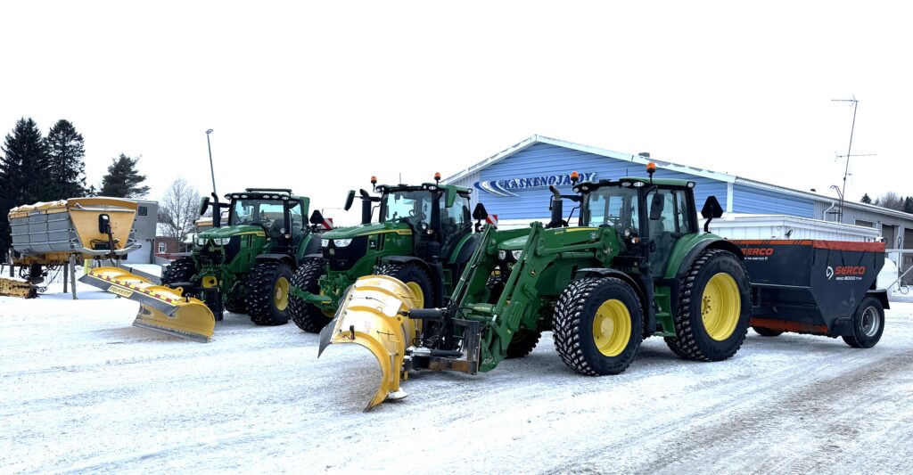 ”Meillä on rivissä seitsemän omaa traktoria, ja uusien sopimusten kautta tuli selväksi, että tarvitsemme aurauksiin ja hiekoituksiin lisävoimaa. Otin yhteyttä W Rentin Tero Uusinokaan, joka räätälöi meille todella toimivan ja joustavan vuokrauspaketin kuudesta eri kokoluokan John Deere -traktorista. Tero tuntee yrityksemme hyvin, ja osasi kasata meille hyvin soveltuvan kokonaispaketin, johon kuuluvat myös laadukkaat Soukkio-aurat”, kertoo Kaskenoja.