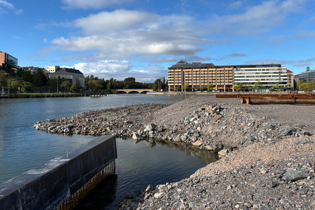 – Valamme porapaaluseinän päälle teräsbetonisen reunapalkin, johon tulee yli 50 jääsuojaelementtiä. Verhoilemme ne nykyisen rantamuurin kunnostetuilla verhoilukivillä. Lisäksi asennamme Signe Branderin terassin meritäyttöalueen rantamuurilinjaan kymmeniä vedenalaisia teräsbetonisia kulmatukimuuri- ja kasuuniarkkuelementtejä, Perokorpi kertoo.