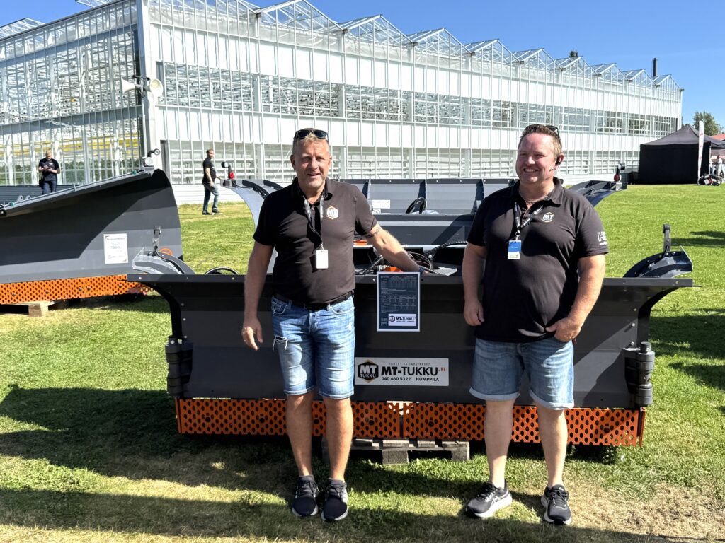 Yli 30 vuotta maatalous- ja maarakennusalan ammattilaisia kattavalla ja laadukkaalla valikoimalla palvellut humppilalainen MT-Tukku esitteli Lepaalla esimerkiksi kattavaa U- ja nivelauravalikoimaa tulevan kauden sesonkeja varten. Ville Nurmen (oik.) lisäksi paikalla oli myös MT-Tukun miehistöön äskettäin liittynyt, yli 20 vuoden konekaupan kokemuksen omaava Jukka Vartola.