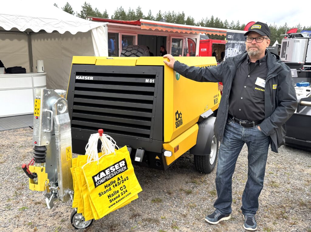 Kaeser Kompressoreilla oli totuttuun tapaan Maxpossa näytillä alan uusimpia ja kehittyneimpiä malleja, ja Jari Kaipola esitteli esimerkiksi uudistuneita M81 Mobilair- sekä M44 Mobilair -malleja. Uutuusmallit, kuten muutkin Kaeserin tuotteet edustavat alan teknisen kehityksen kärkeä ja ympäristöystävällisyydestä kertoo päästöluokkien korkea taso. Uudistunut M81 käyttää Hatz-moottoria, ja toimii ilman SCR-järjestelmää tai AdBluea, mikä tekee pakokaasujen jälkikäsittelystä huomattavasti yksinkertaisempaa. Mallissa on kaksi jatkuvasti säädettävää painealuetta: 6–10,3 bar ja 6–14 bar. Innovatiivisen pV-ohjauksen ansiosta ilmantoimitus kasvaa alhaisemmilla käyttöpaineilla. Saatavilla on myös valikoima lisävarusteita paineilman käsittelyyn. M81 voidaan myös konfiguroida tuottamaan sähköä työmaalla.