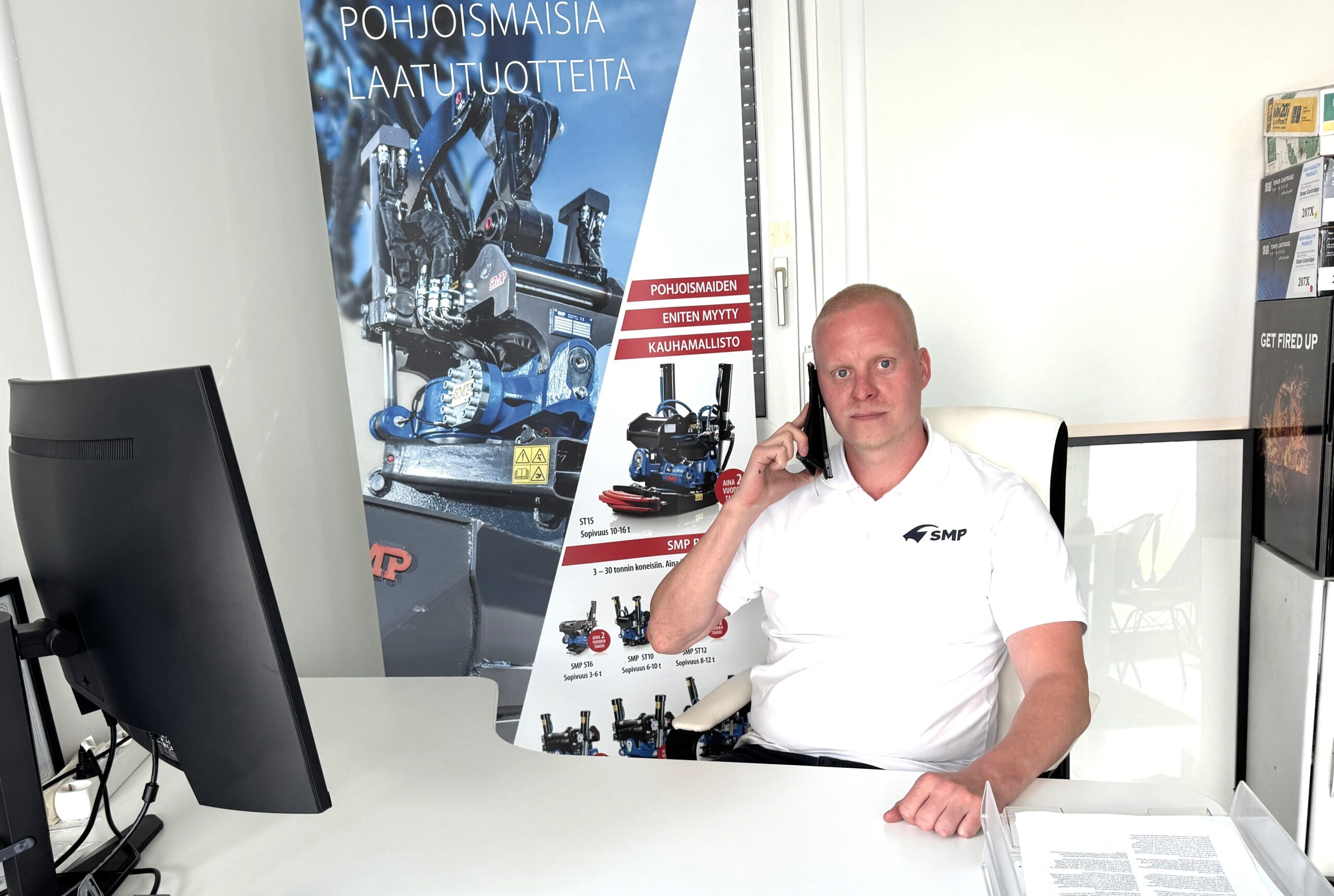 SMP Tiltrotatorsin Oy:n myyntipäällikkö Joonas Heinonen palvelee asiakaskuntaa Keravan toimipisteessä. Heinonen osaakin kertoa oikeat ratkaisut esimerkiksi kauhanpyörittäjien ja kiinnikkeiden hankintoihin.